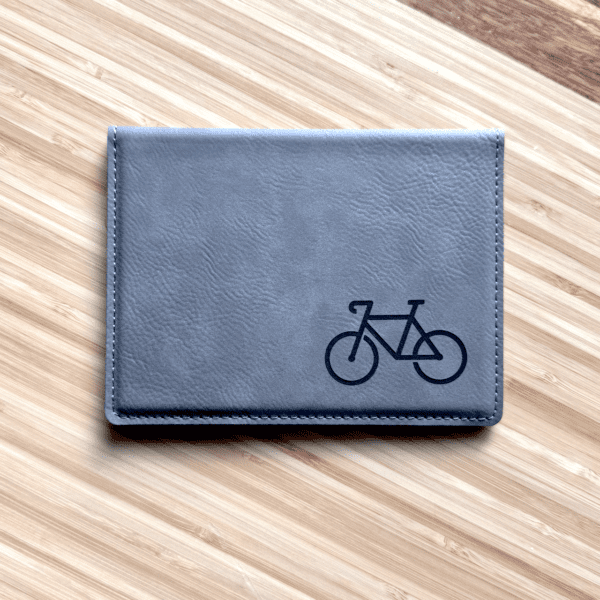 Sturdy vegan leather passport holder with a faux suede interior and pockets tailored for carrying all of your travel documents. Bicycle design is laser engraved for long-term durability and won’t fade with regular use.