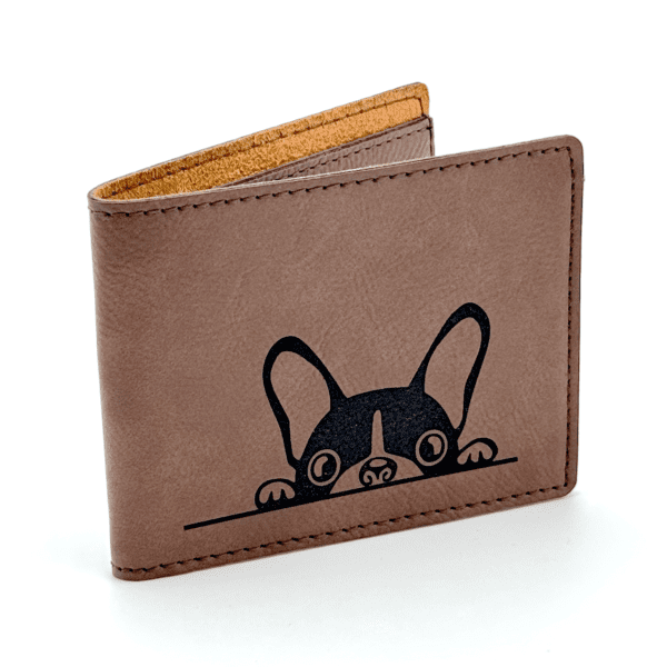 A soft, flexible simple wallet made from vegan leather and faux suede. Low profile which won’t add bulk. Subtle laser engraved Dog design to add your personality to your every item. Holds 6 cards and a place to stash full bills.