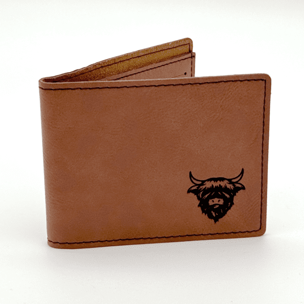 A soft, flexible simple wallet made from vegan leather and faux suede. Low profile which won’t add bulk. Subtle laser engraved Highland Cow design to add your personality to your every item. Holds 6 cards and a place to stash full bills.