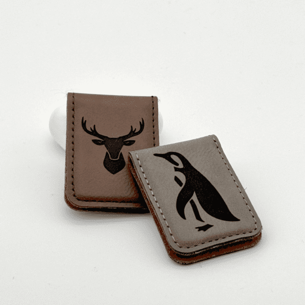 A simple magnetic-closure money clip designed to keep your cash secure. Made from vegan leather and faux suede. Laser engraved Penguin design add your personality to an item you’ll use every day. Not recommended for use with cards. Wipe clean with a soft damp cloth. Do not submerge.